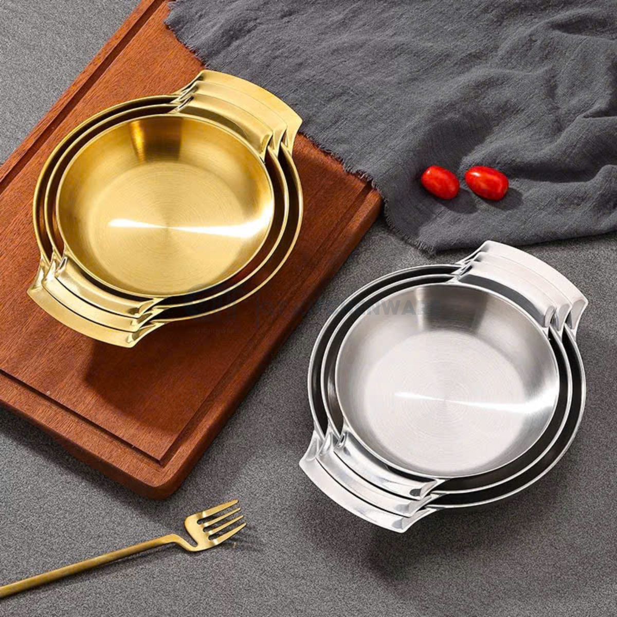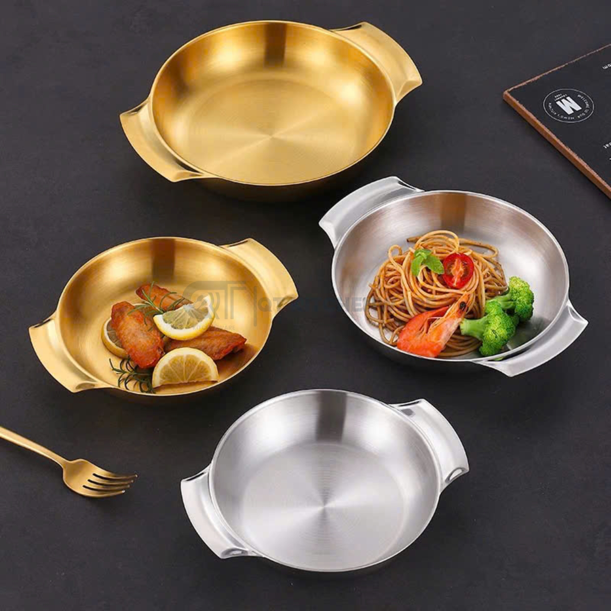 • Có 2 màu sắc: inox bạc và vàng sang trọng, tạo điểm nhấn thẩm mỹ khi bày biện món ăn.